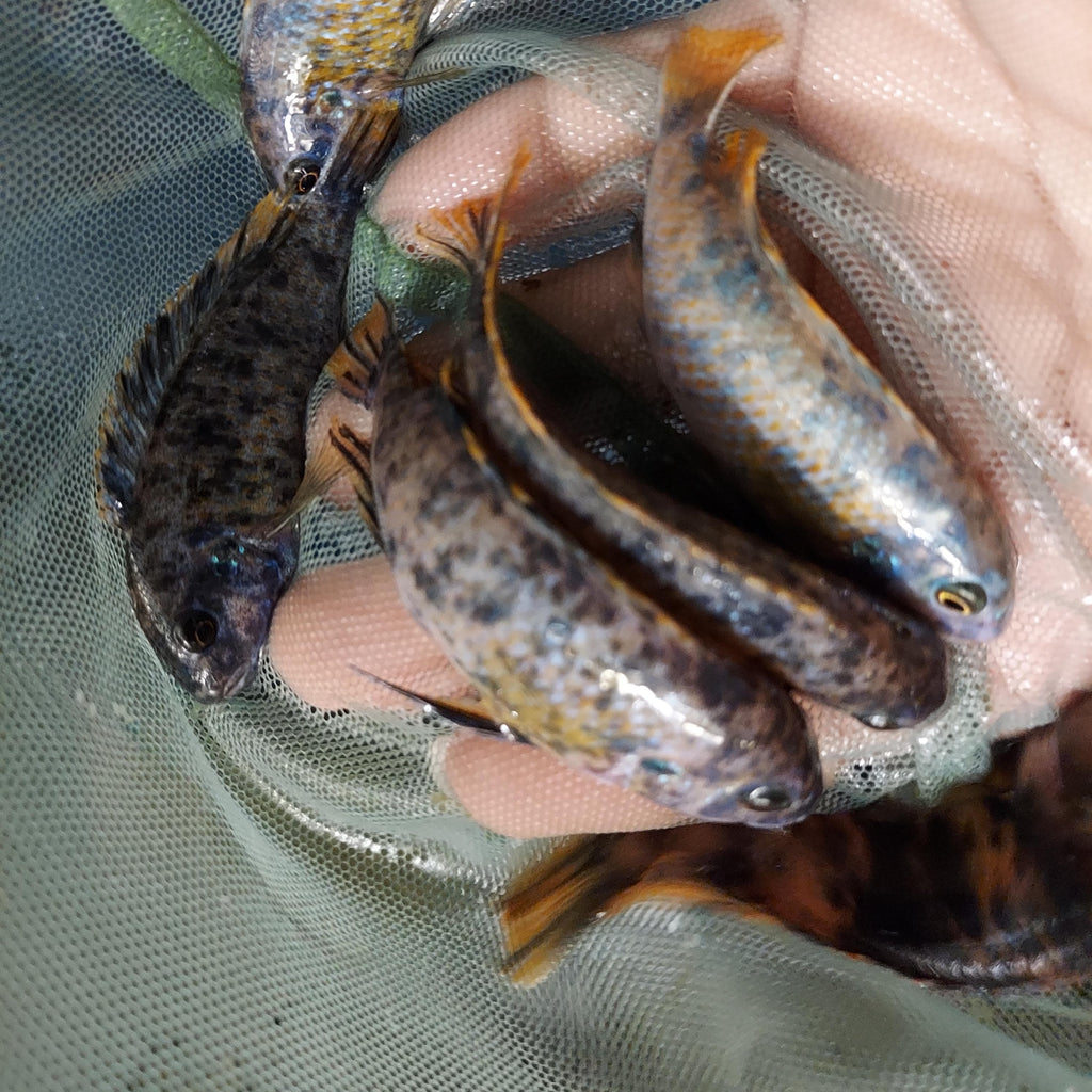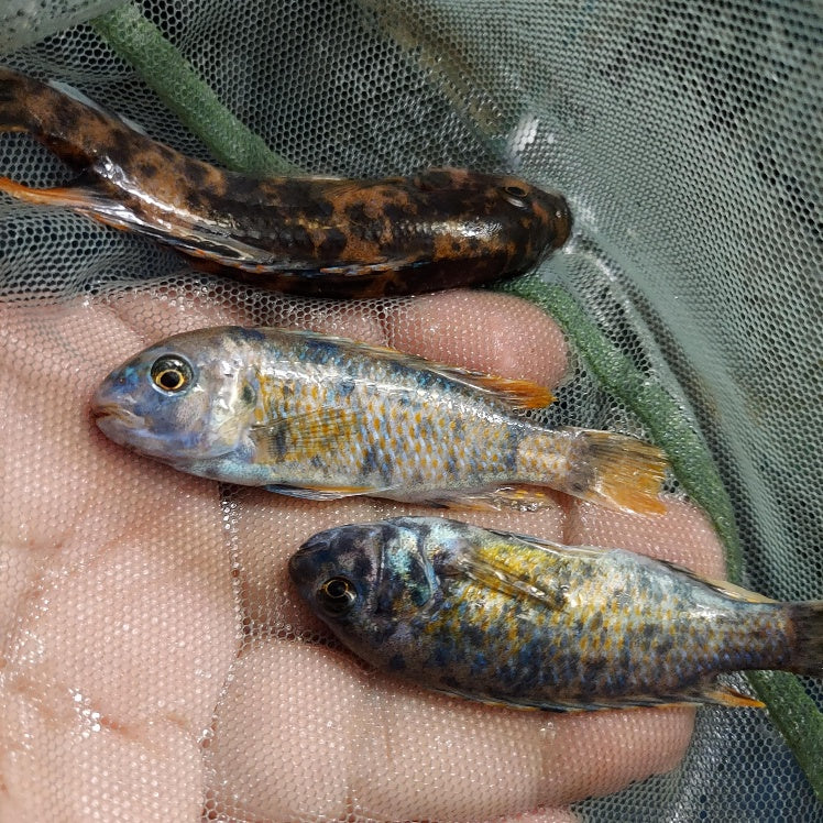 Bring vibrant energy to your aquarium with the Marmalade OB Peacock, a stunning hybrid from the Aulonocara line of Lake Malawi cichlids. This selectively bred variety combines the brilliant metallic blues of the Peacock cichlids with the bold orange blotch (OB) pattern of Mbuna ancestry, creating one of the most visually striking African cichlids available.